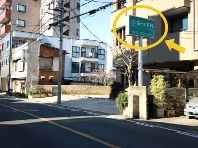 交差点を渡って左折し、大通り沿いを30秒ほど歩くと、右手に当院があります。はーと歯科クリニックの緑の看板が目印です。